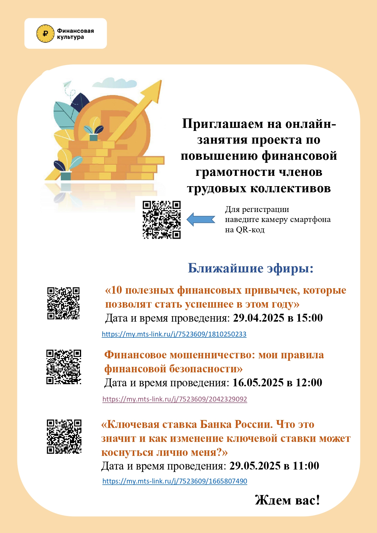 Приглашаем на онлайн занятия проекта по повышению финансовой грамотности членов трудовых коллективов